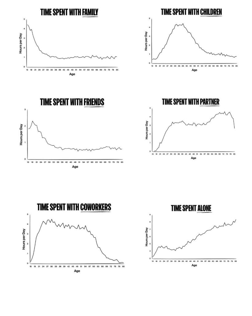 私たちが「家族・子ども・友人・パートナー・同僚・ひとりの時間」にどれだけ時間を使っているのかを可視化しています。