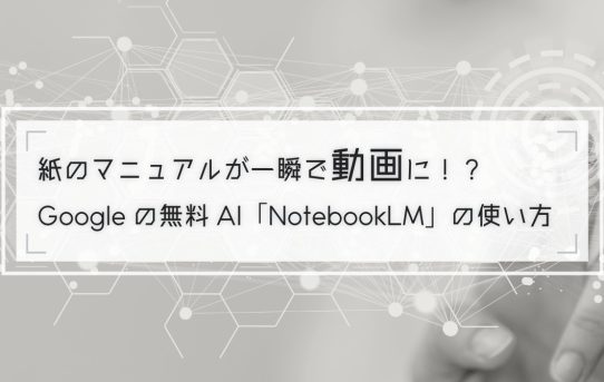 紙のマニュアルが一瞬で動画に!?Googleの無料AI「NotebookLM」の使い方 Posted on 2026年2月23日2026年2月23日 by s_hase FROM:杉野(スクロジマーケティング) こんにちは!杉野です。 「動画マニュアル」の作り方を発信しています。 「社内の作業手順... Read More