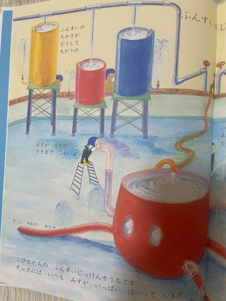 この絵本に出てくる“噴水実験”は、実はポンプがなくても動く仕組み。