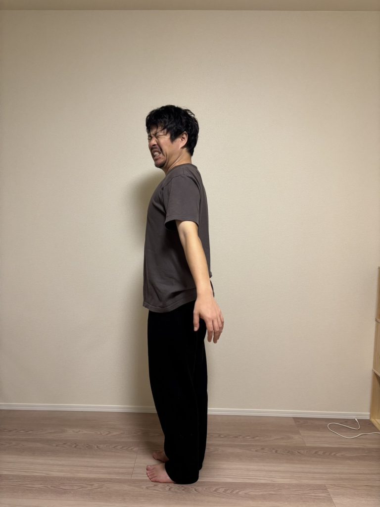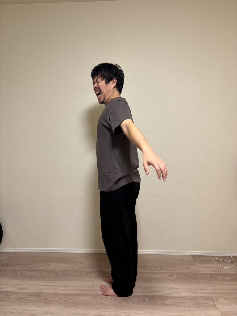 苦痛に顔が歪んでいますが、もうこの角度でけっこう痛いんです。