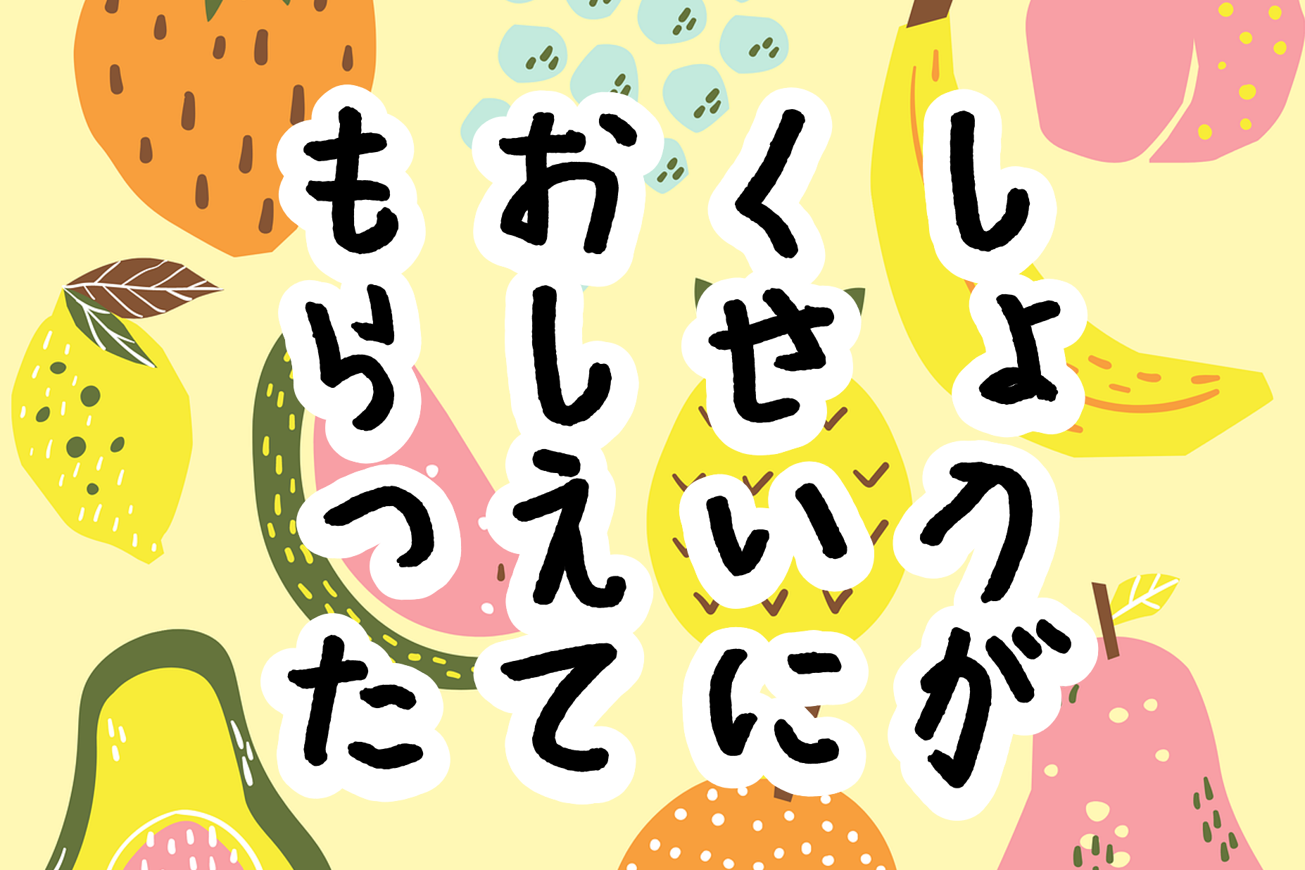 レモン、バナナ、イチゴ、柿、パイナップルに続いてアボカド、キウイ、リンゴが並んでいました。