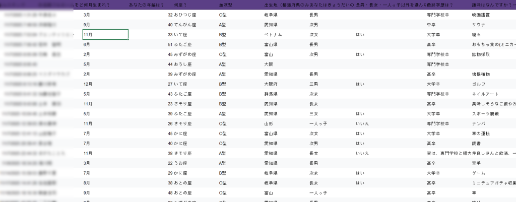 年齢や身長、出身地や生まれ月、趣味や兄弟構成などなど、