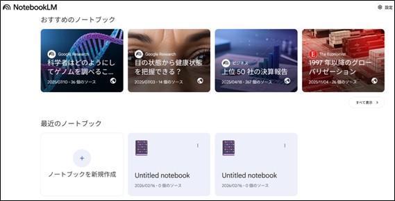 - 一番上に出てくる「NotebookLM」をクリック。